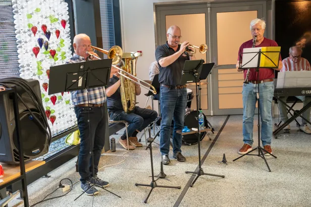 Forsker Tormod Skogstad Nilsen fra Norges Idrettshøgskole holdt et innlegg om effekt av trening på ulike bivirkninger og seneffekter av kreftbehandling. Treningsprofil Yngvar Andersen er ambassadør for Aktiv mot kreft og la turen innom Hønefoss for å snakke om trening i hverdagen. Det ble til og med tid til en liten treningsøkt sammen med han før det var klart for jubileumskake og kaffe – lett akkompangert av musikk fra Rønnerdal Jazzband, som også åpnet jubileumsarrangementet.